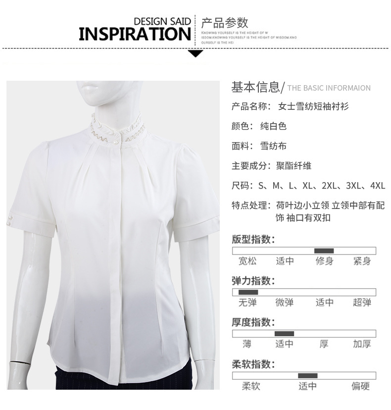 袖長 | 短袖 | 工藝 | 印花/印染 | 貨號 | 女士雪紡短袖襯衫 |
